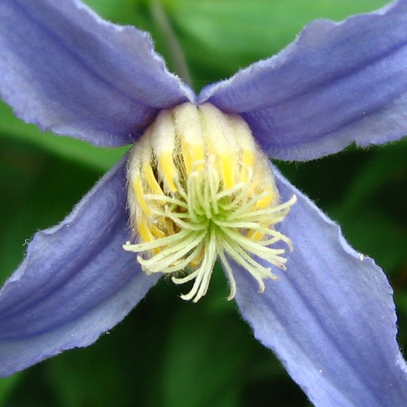 花径は、8~9cmで、花色(萼片)は、淡紫青色である。