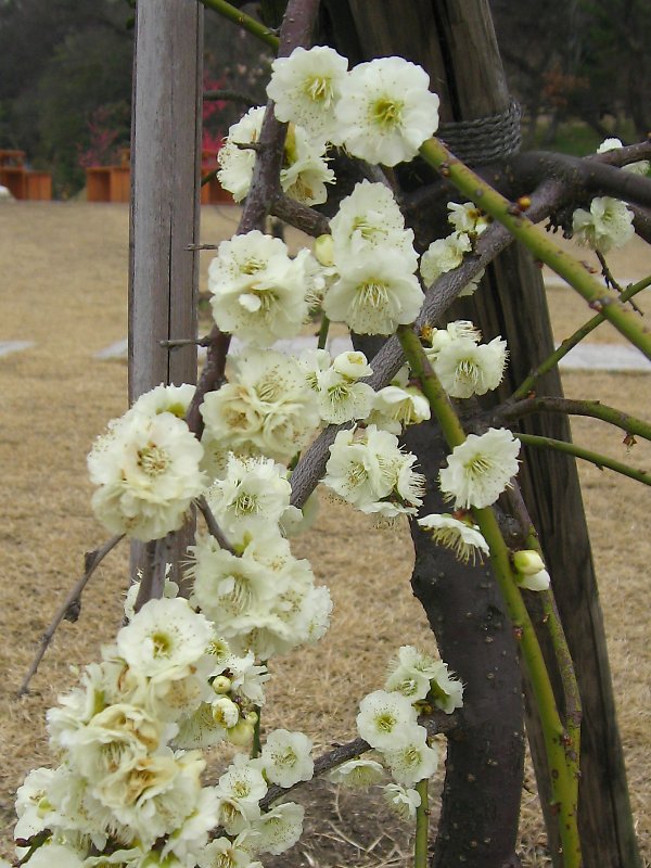 シダレハクバイは、花梅品種で、枝が垂れ下がる。 枝が垂れ下がる「シダレウメ」は、学名が Prunus mume f. pendula であり、本種は、その花色が白色の園芸品種である。 花は白色の八重咲きで、中輪である。 花弁および雄しべは多数で、葯は黄色である。