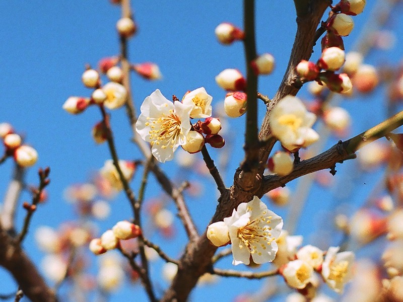 花は白色の一重で小さく、花粉は多い。