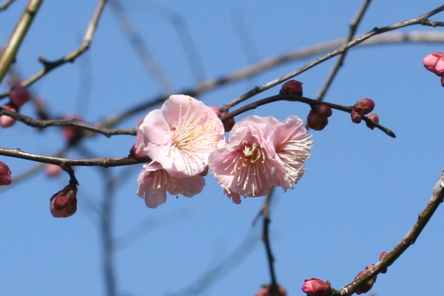 アサヒボタンは、端正な花姿で、 鉢植え、庭木ともに適する。 開花時期は、2月上旬~3月上旬である。 花は紅色の八重咲きで、大輪である。 花弁、雄しべともに多数で、葯は黄色である。 [ 引用 : 愛知県植木センター梅園名板 ]