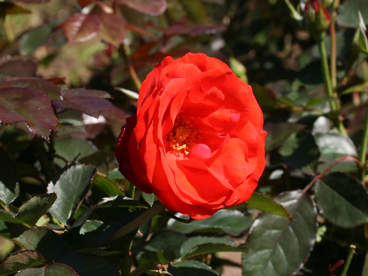 オリンピック・ファイヤーは、微香で四季咲きの品種である。 高さは、0.6~0.8mくらいとやや低い。 花が鮮赤色の八重咲きで、中輪である。 花形は、丸弁平咲きである。 作者が特定できていなかったが、2017.10.26 に Tantau (タンタウ) とわかった。