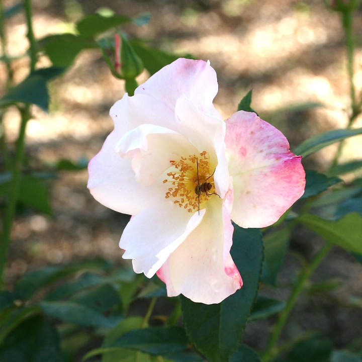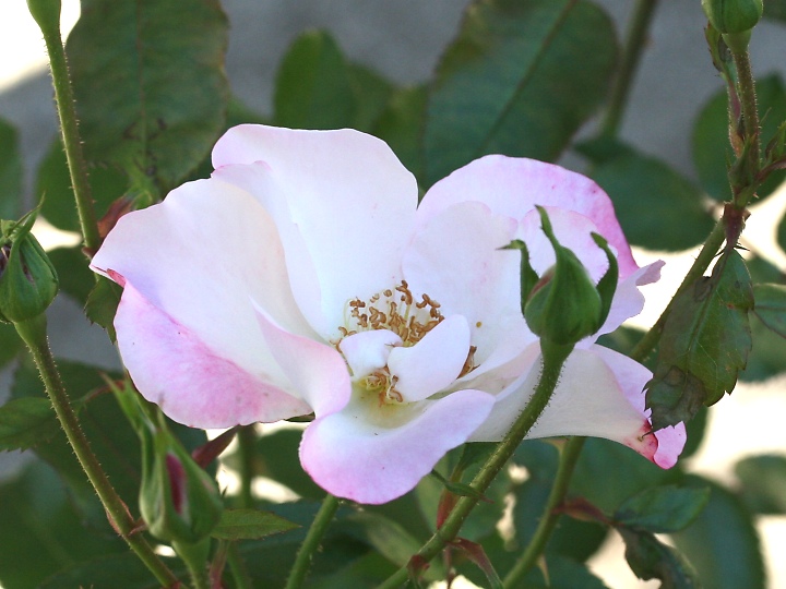 花は、薄いピンク色に縁が濃いピンク色の複色である。