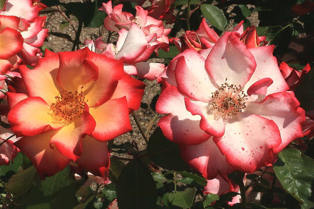 開花後にクリーム地は3枚目(左下)の右の花のように白色になる。