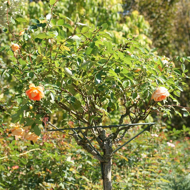 パット・オースチンは、花弁の表は濃いオレンジ色、裏は光沢のある黄色のカップ咲きである。 四季咲きの八重で、花径が約10㎝の大輪で、樹形は横張で、樹高は1.2m程度である。 枝は堅めだが花はうつむいて咲く。 香りは強くてさわやかなティー・ローズ香である。 シュート(新梢)の発生もよい。 葉は明緑色の照り葉でよく茂る。 花弁がやや弱く、急に強い陽ざしに当てるとしおれることがある。 品種名は作出者の妻の名前である。 [ 引用 : バラ大図鑑(NHK出版発行)]