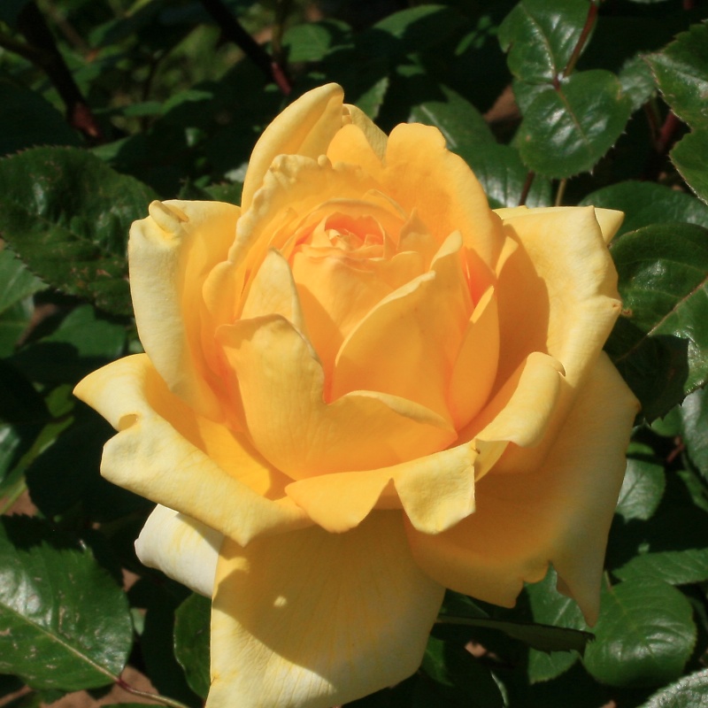 あゆみは、強香の四季咲きで、八重の大輪である。 花形は剣弁高芯咲きで、花色は明るい黄色である。 樹形は直立性で、高さは、1.0~1.2m 程度である。 京成バラ園芸(株)が創立50周年を記念して作出した品種で、 「あゆみ」は京成バラ園芸(株)の 50年の歩みと未来を意味して いるそうです。