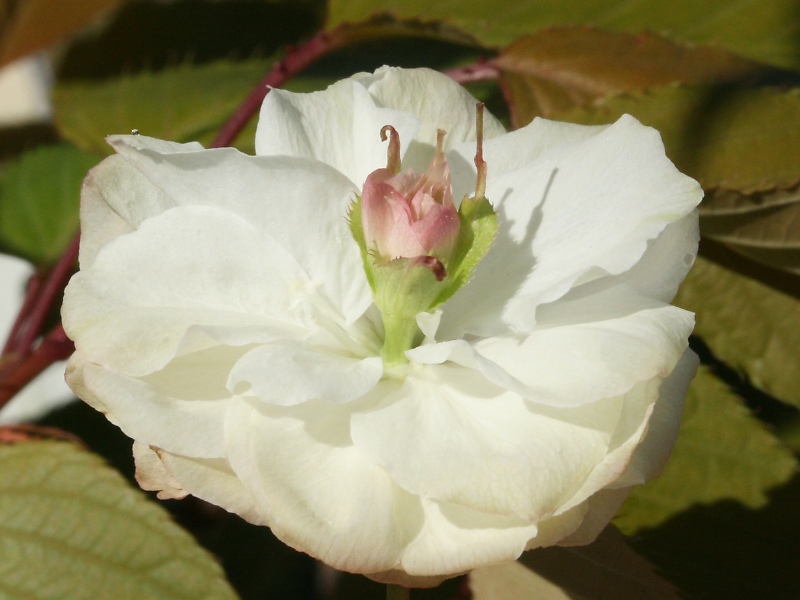 MEMO: 満開の須磨浦普賢象で、花の中心の葉化雌しべから花弁が 出てきている状態で、須磨浦普賢象の最大の特徴の二段咲きの始まりである