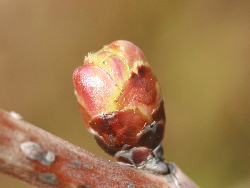 MEMO: 冬芽の先端が割れ、間もなくつぼみが顔を出し始めるところ