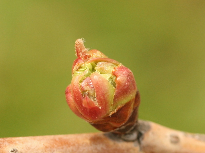 冬芽の先端が割れ、つぼみがもうじき出始めるところ