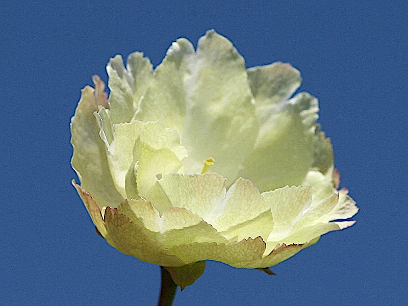 MEMO: 開花した鬱金で、花弁は黄緑色で、八重の大輪である。 黄緑色の花弁は非常に珍しく、御衣黄・普賢象・須磨浦普賢象などがある