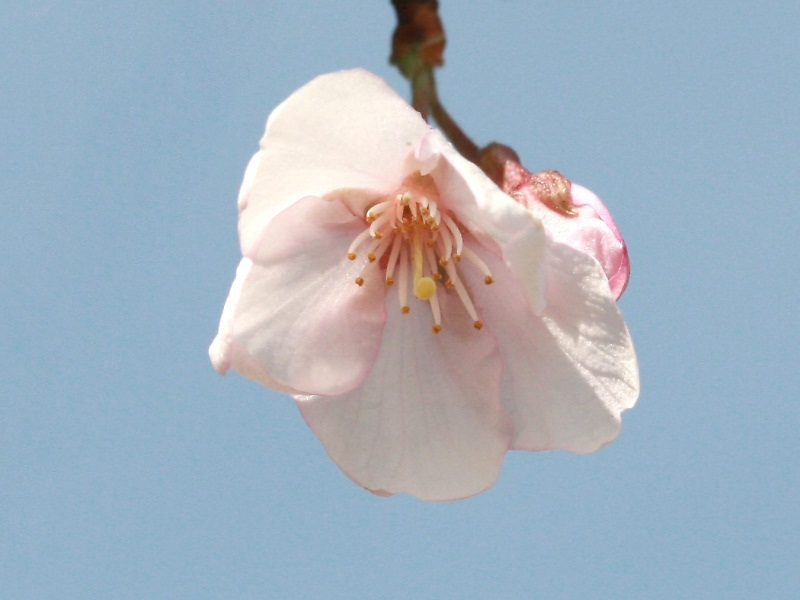 MEMO: 開花した江戸彼岸で、花弁は淡紅白色、一重で小輪である