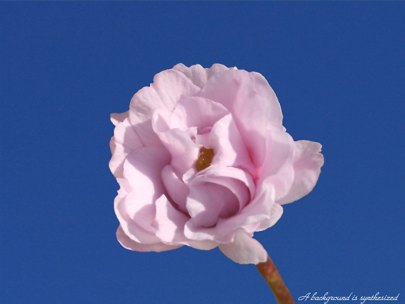 MEMO: 開花した八重紅枝垂で、花弁は淡紅紫色で、八重の小輪である