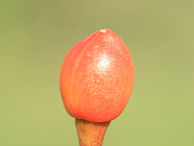MEMO: 結実しにくく珍しい大寒桜の熟した果実で、長さ×幅:9×7mmと やや大きく、初めて見る黄熟した果実である