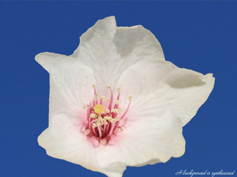 MEMO: 散り始めの大島桜で、この頃から雄しべが淡紅紫色になってくる