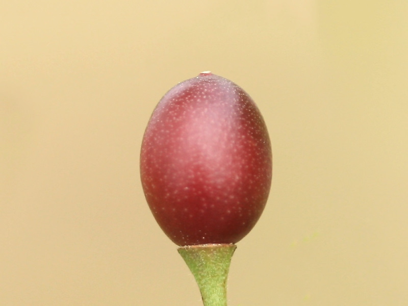 MEMO: 大島桜の実で、長さ9mm、幅6mmで、この後黒熟するが苦い