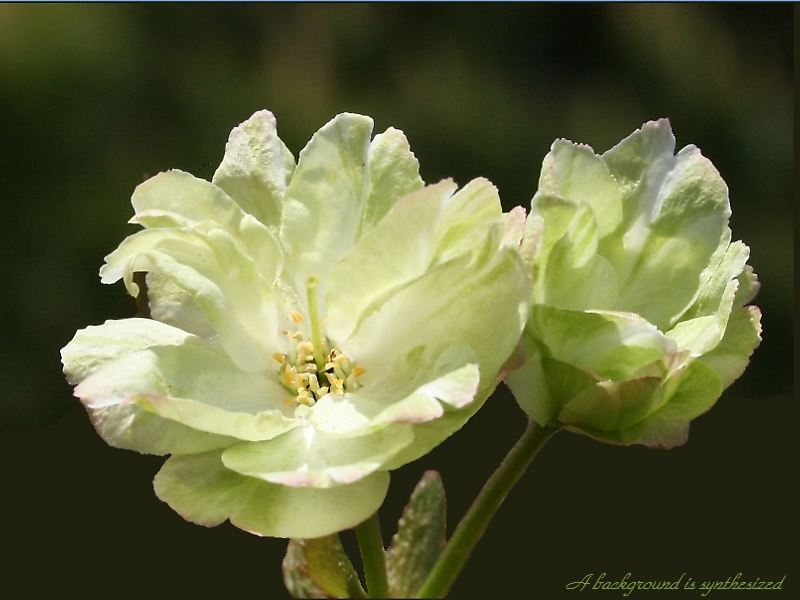 MEMO: 開花した御衣黄で、黄緑色の花弁は非常に珍しい品種である