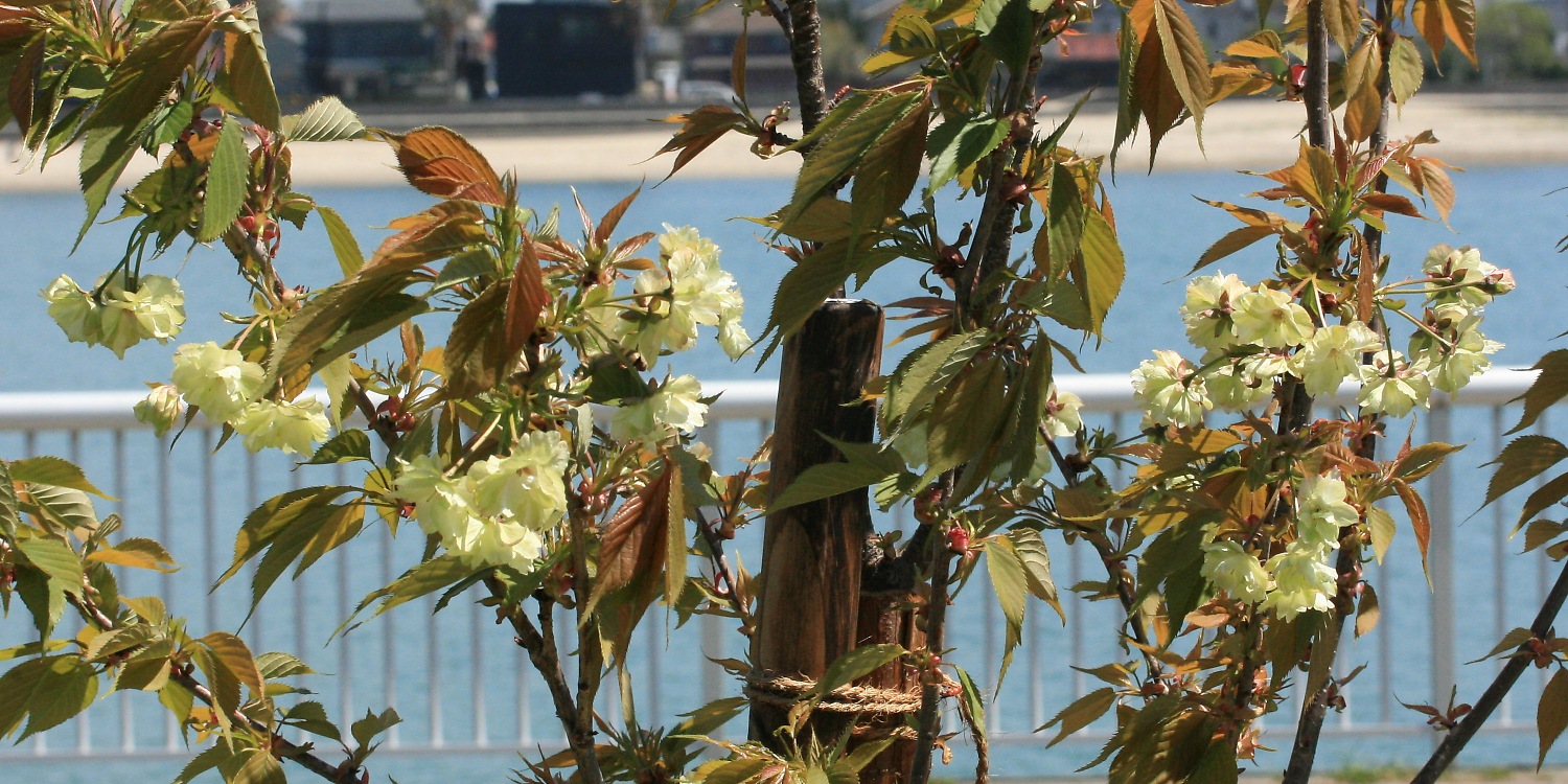 MEMO: 満開の御衣黄であるが、若木のため花はまばらにしか咲かないうえに 花色が黄緑色のため遠くからでは目立たない
