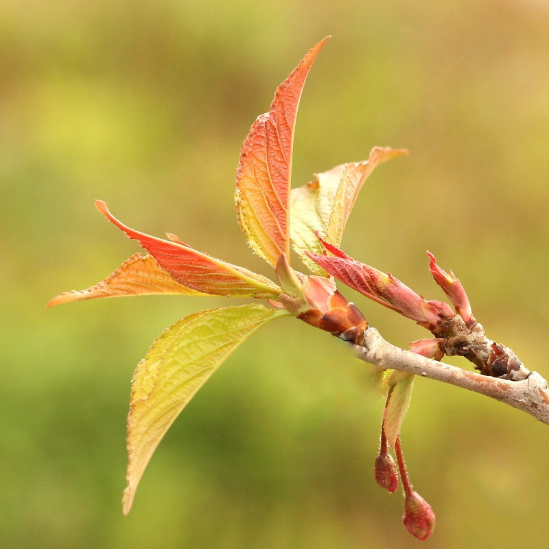 啓翁桜は満開を過ぎた頃から、このような若葉が出る