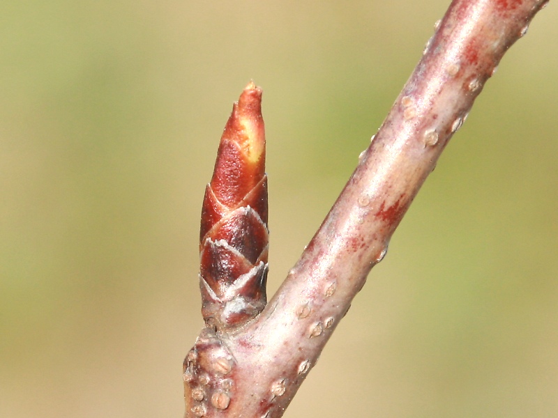 冬芽の先端に、淡黄緑色が見え始めてきたところ