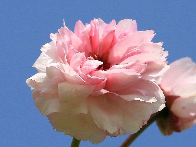 MEMO: 開花した兼六園菊桜で、初めて見る花でどの時点で開花か迷ったが、 この花で開花とした。花弁は淡紅~紅色で、菊咲きの中輪である