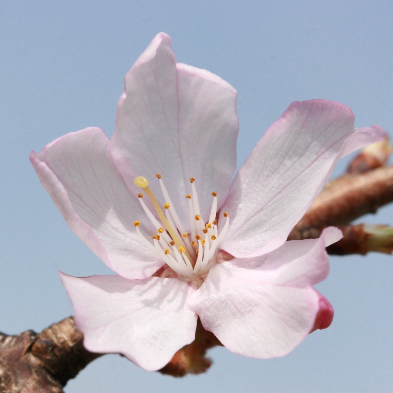 MEMO: 開花した小彼岸桜で、花は小輪の一重、花弁は淡紅色である