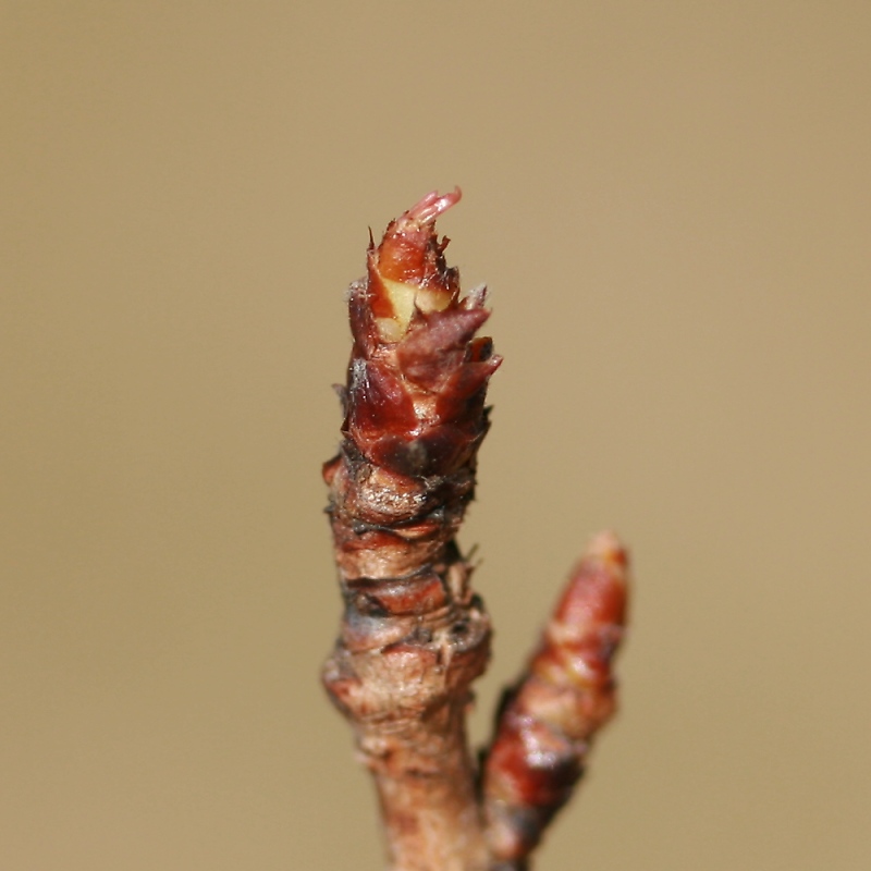 冬芽の先端が割れ、淡黄緑色が見え始めてきたところ