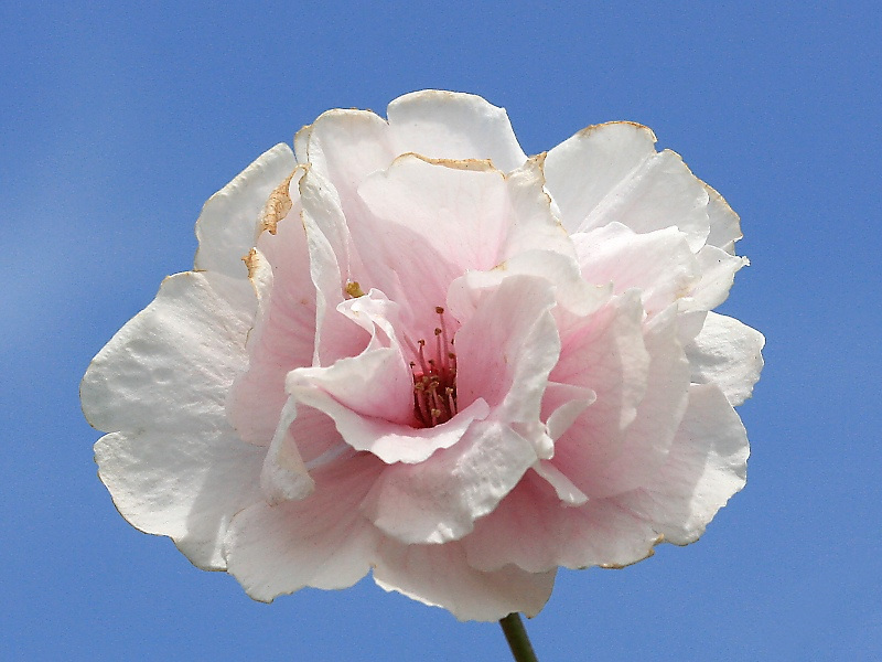 MEMO: 花時期終り間近の朱雀で、花中心が淡紅紫色になり花弁も枯れてくる