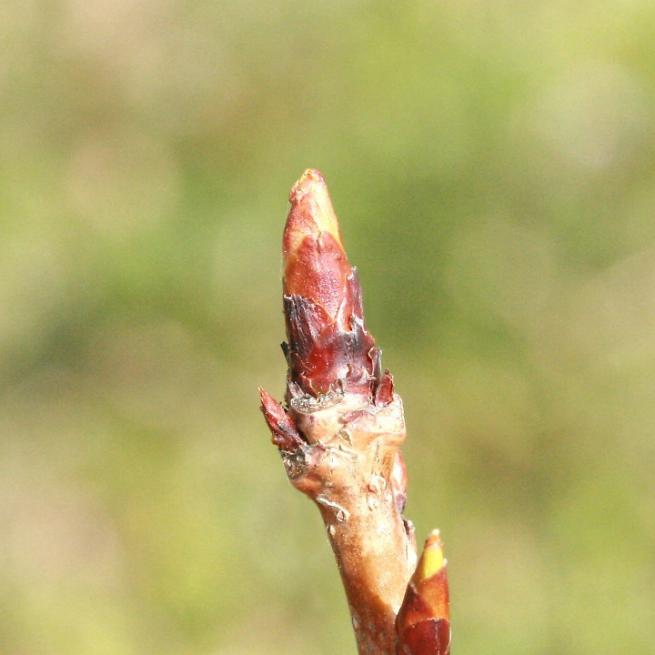 冬芽が更に膨らみ先端が淡黄緑色に見え始めたところ