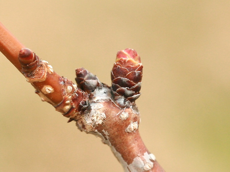 冬芽が膨らみ、先端に淡紅色が見え始めてきたところ