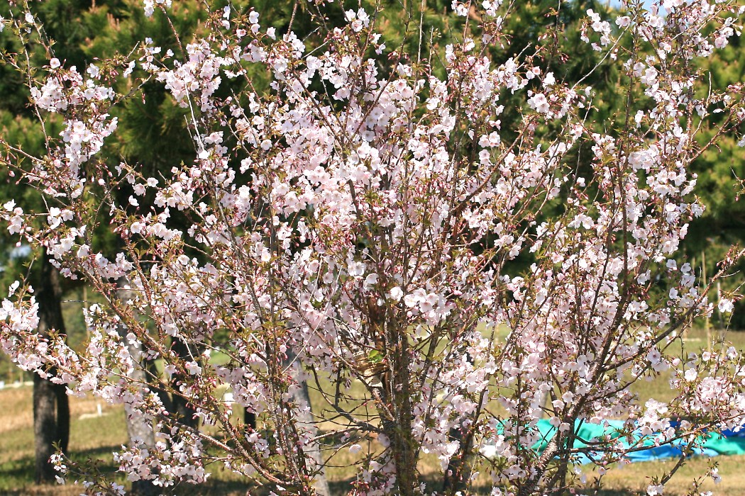 MEMO: 満開の豆桜で、若木であるが木全体に花がつき見栄えがする