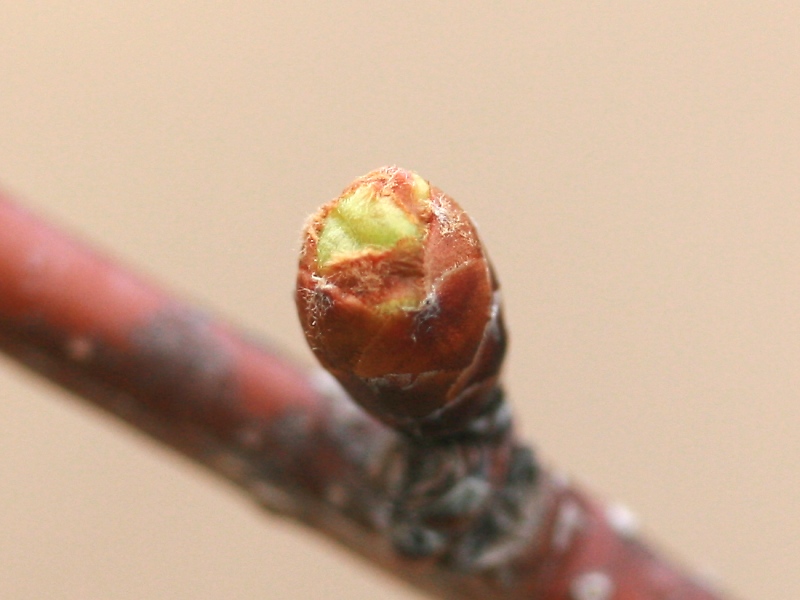 MEMO: 冬芽が益々丸みを帯び、先端が割れ淡緑色が見えてきたところ