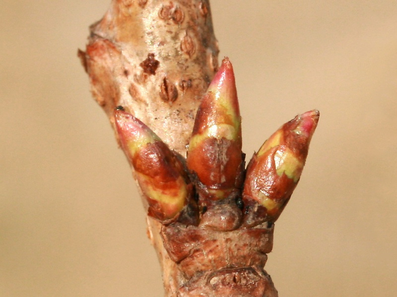 冬芽が膨らみ、先端に淡紅色が見えてきたところ