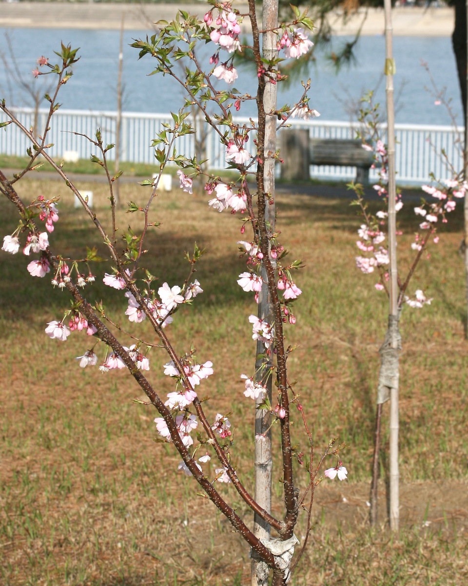 MEMO: 満開時期を迎えたアーコレードであるが、植栽2年目の 超若木であり、木全体には花が付かないため華やかさは無いが、 60本以上も植栽されているため、次から次と咲いて長く楽しめる