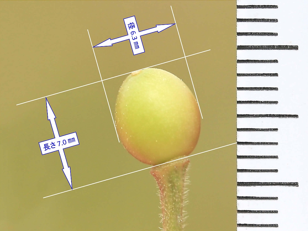 MEMO: アーコレードの実の長さで、長さ 7.0 ㎜とまだ小さいが、 実径が 6.3 ㎜もあり球形に近い形で、桜の実の中では丸いほうである