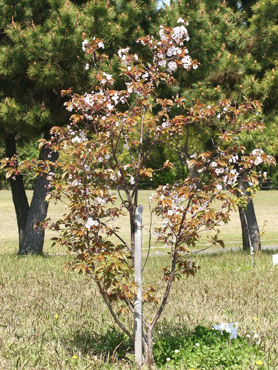 MEMO: 散り始めを迎えた嵐山で、葉がかなり開いており、 葉に埋もれて花が目立たなくなってきている