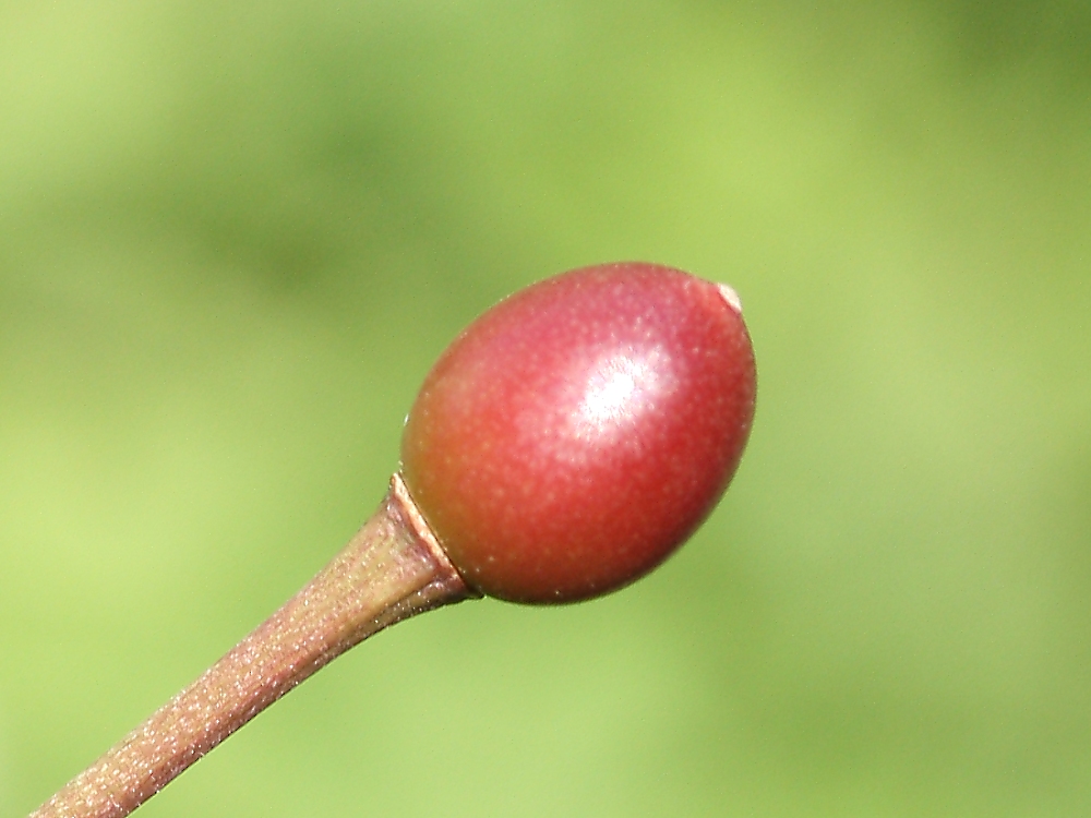MEMO: 嵐山の実で、嵐山は普通に結実する品種で、 もう、実が赤くなっており熟し始めてきたところ