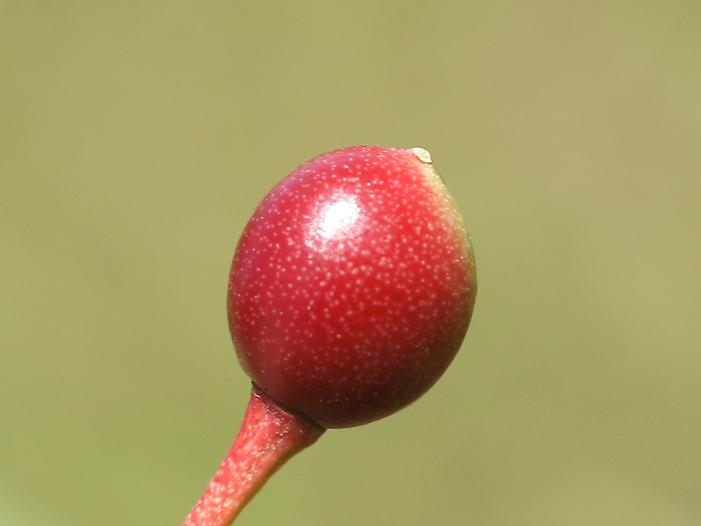 MEMO: 嵐山の実で、実全体が真っ赤になっており、形も球形になってきて おり、完熟に向けて熟し中であるが、完熟するまでに落下しないか心配である