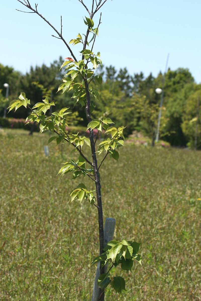 MEMO: 葉桜状態の一葉で、木の傷みが激しく、年々木の衰え が進んでおり、植栽5年目であるが、こんなに淋しい状態である