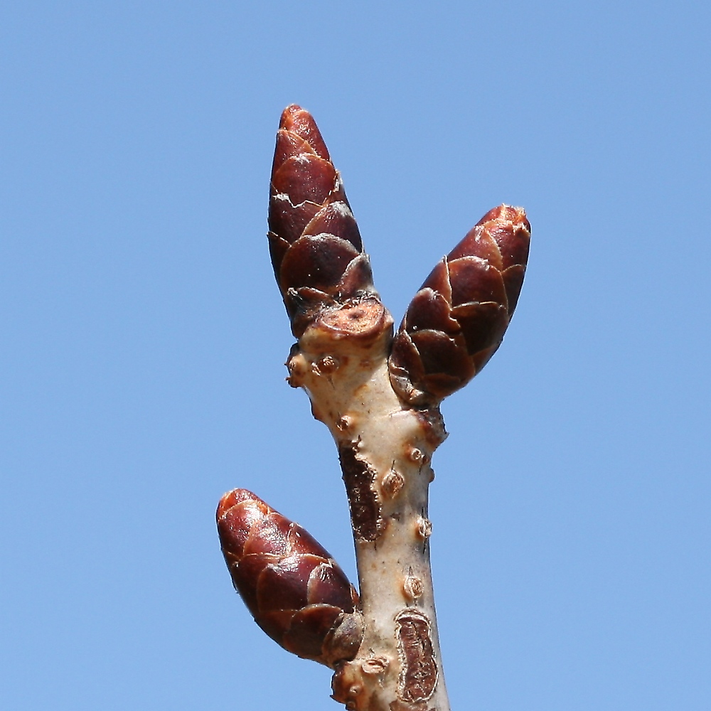 MEMO: 膨らみ始めた右近の冬芽で、先端がかすかに割れ始めてきたところ