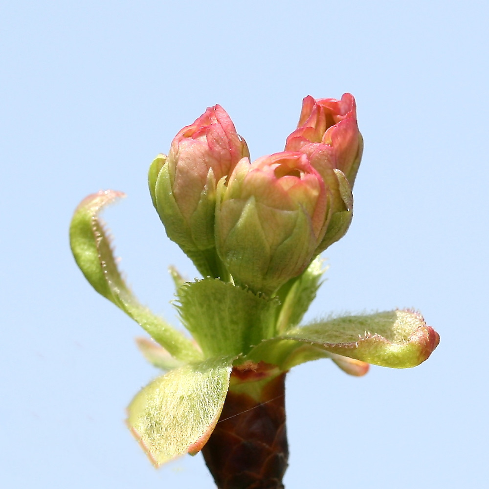 MEMO: 1個の冬芽(花芽)から2~3個のつぼみが出た右近で、 つぼみの花弁は紅色をしているが、咲いた花の花弁は黄緑色である
