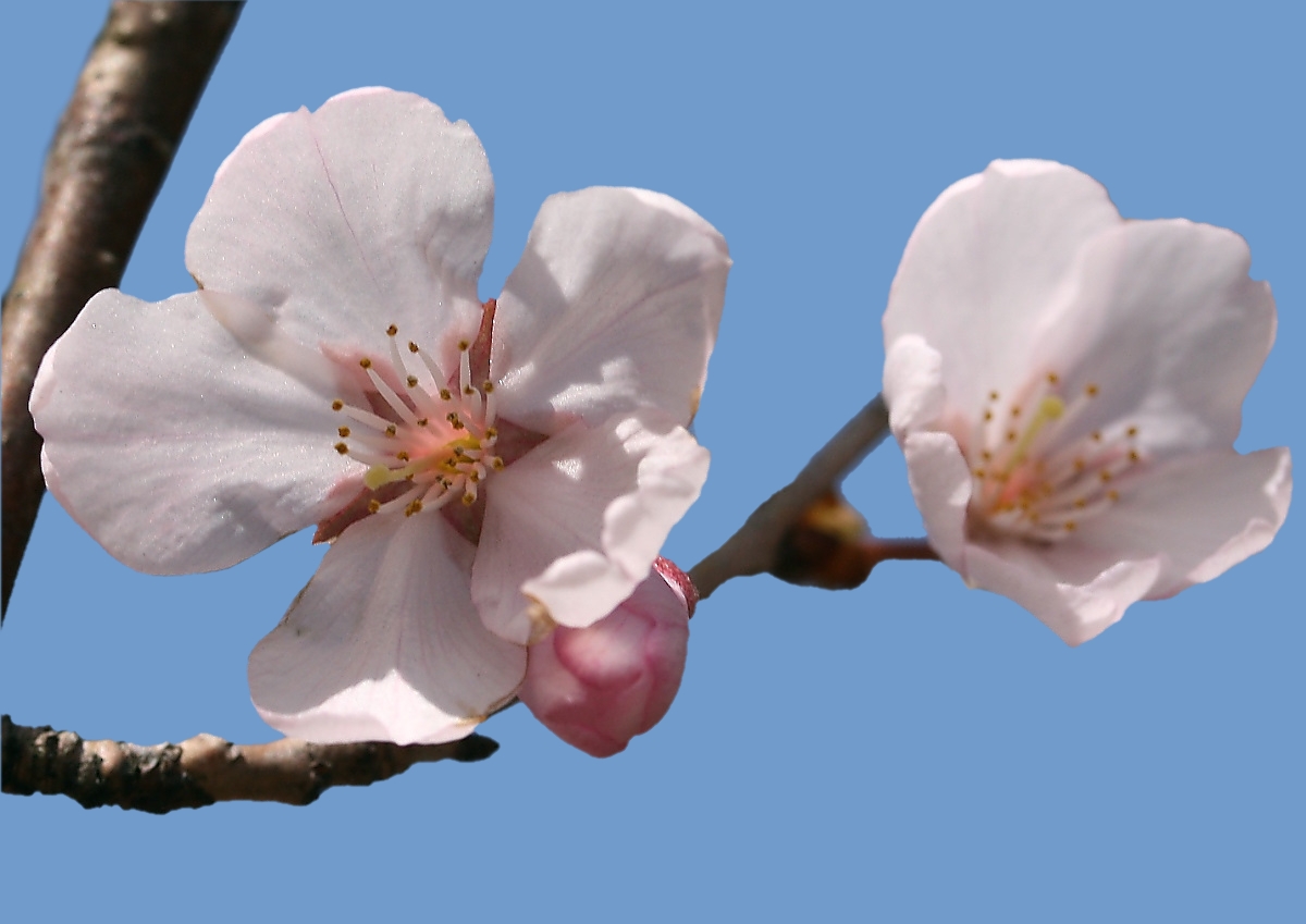 MEMO: 開花したばかりの江戸彼岸で、淡紅白色の一重の小輪で、 例年なら彼岸ごろに開花するが、今年は暖かく早めに開花した