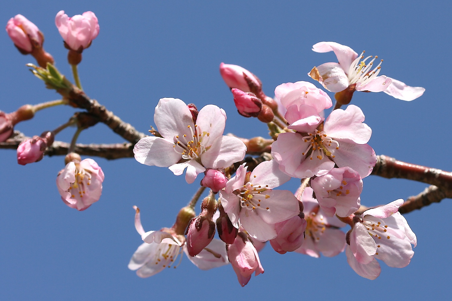MEMO: 満開になったの江戸彼岸で、満開といっても木全体には花 が付かず、この枝が一番花が多い枝で、チョッピリ淋しい満開である