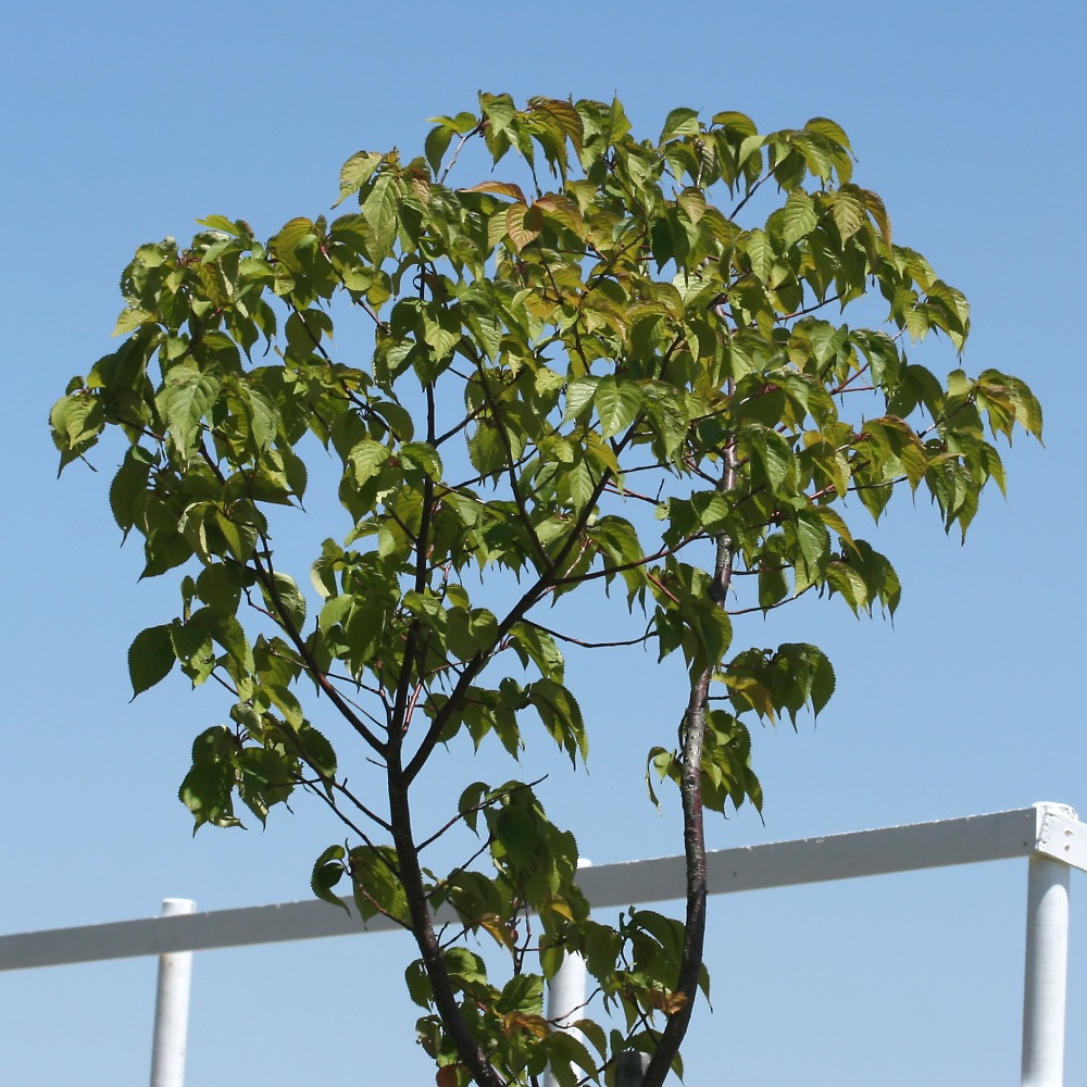 MEMO: 葉桜状態の大山桜で、赤茶色の若葉も黄緑色に変わり、すっかり葉桜 となったところで、木はだいぶん大きくなったが、ここ3年間花が咲いていない