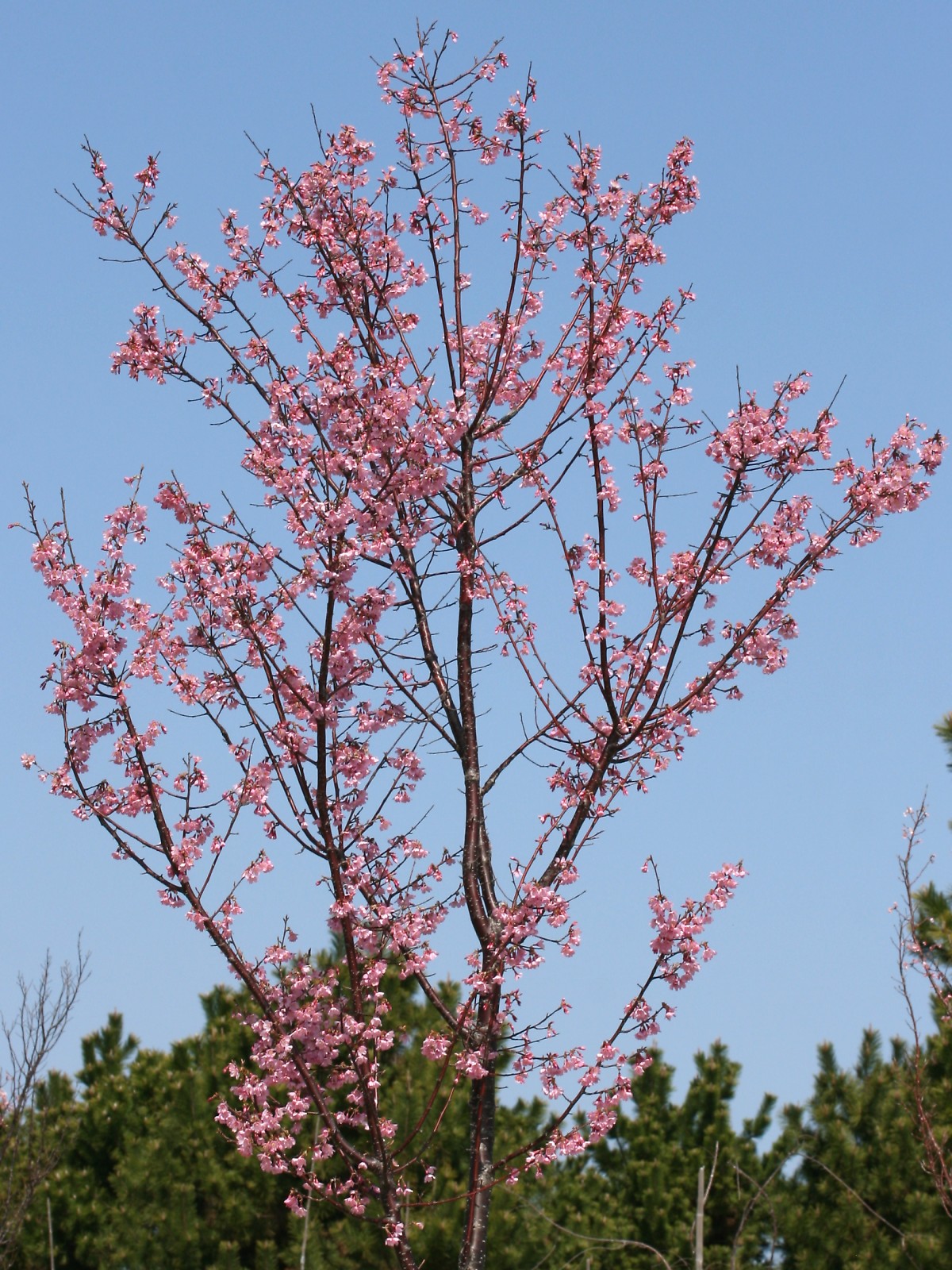 MEMO: 7~8分咲きのオカメで、花弁と萼が濃いめの淡紅色で、 若木のうちから花が密集して咲くため、遠くからでもよく目立つ