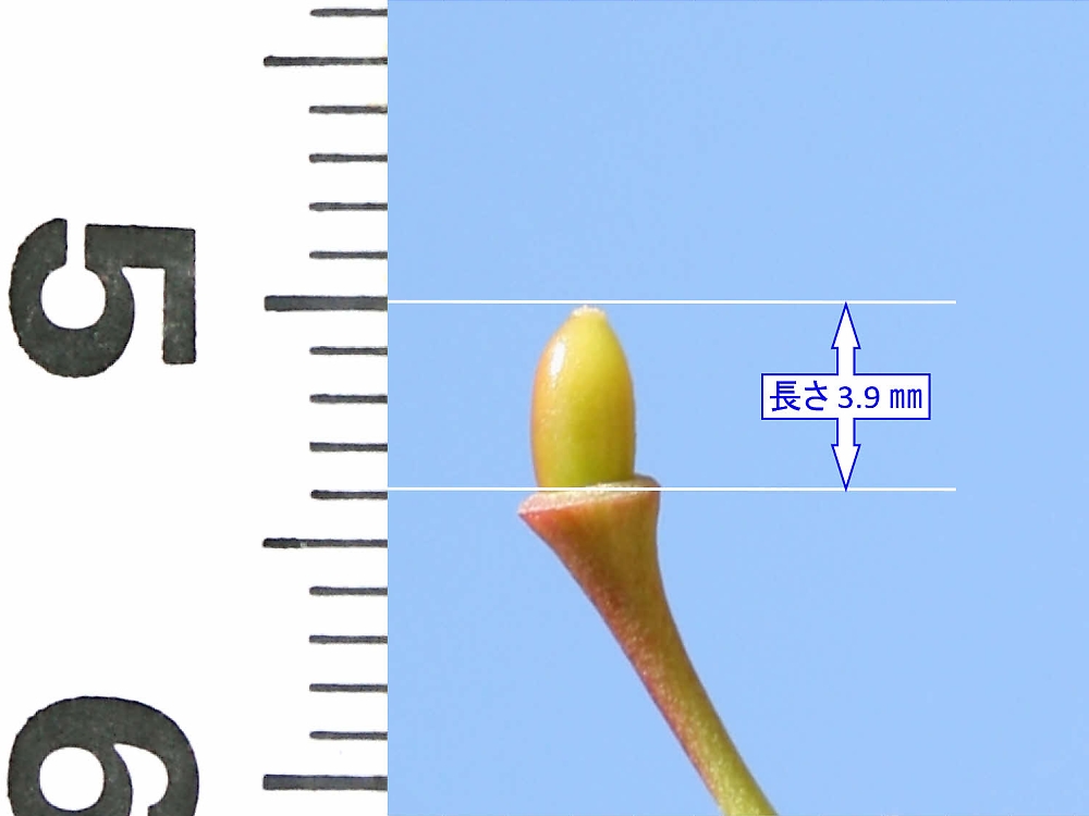 MEMO: 結実したばかりのオカメの実の長さで、3.9 ㎜と非常に小さい