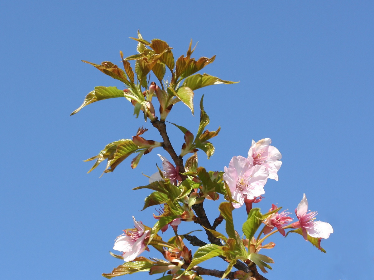 MEMO: 満開を迎えた河津桜であるが、枝の先端にはもうすっかり 葉が開き始めており、花だけの状態は短いのが河津桜の特徴である