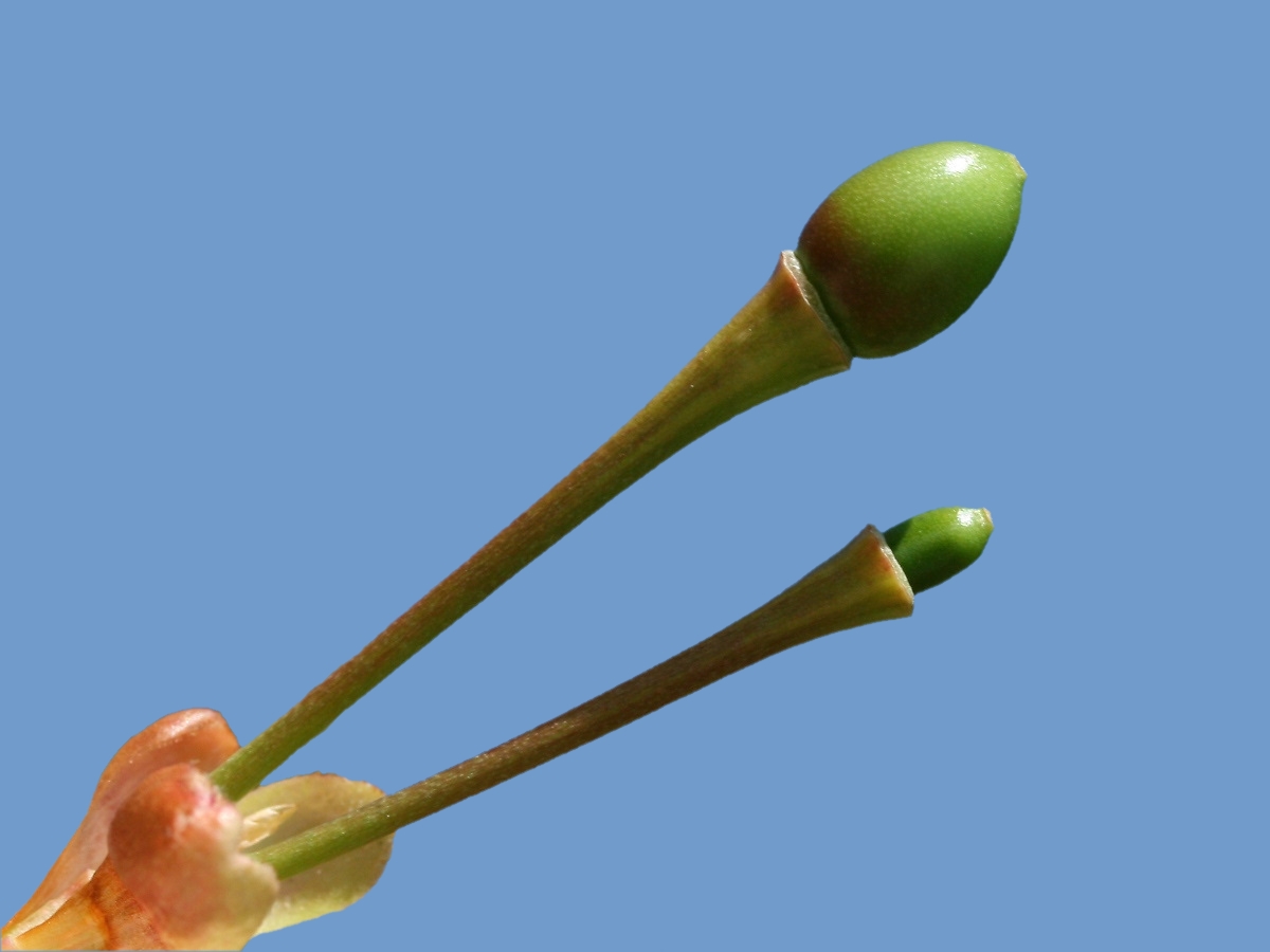 MEMO: 結実したばかりの河津桜の実で、できたばかりは卵形で濃緑色である