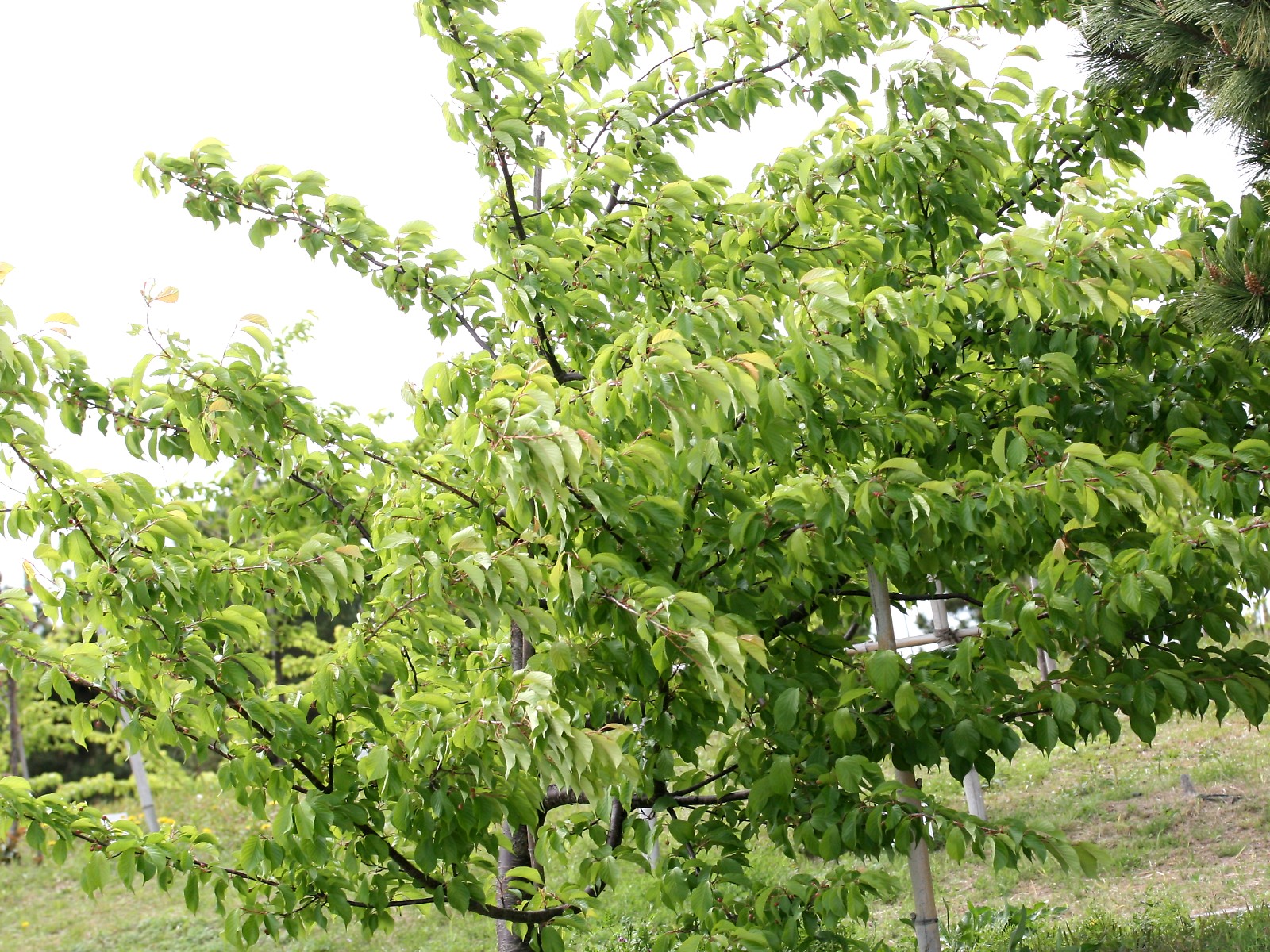 MEMO: すっかり葉桜となった河津桜で、大きな淡緑色の若葉で覆われている