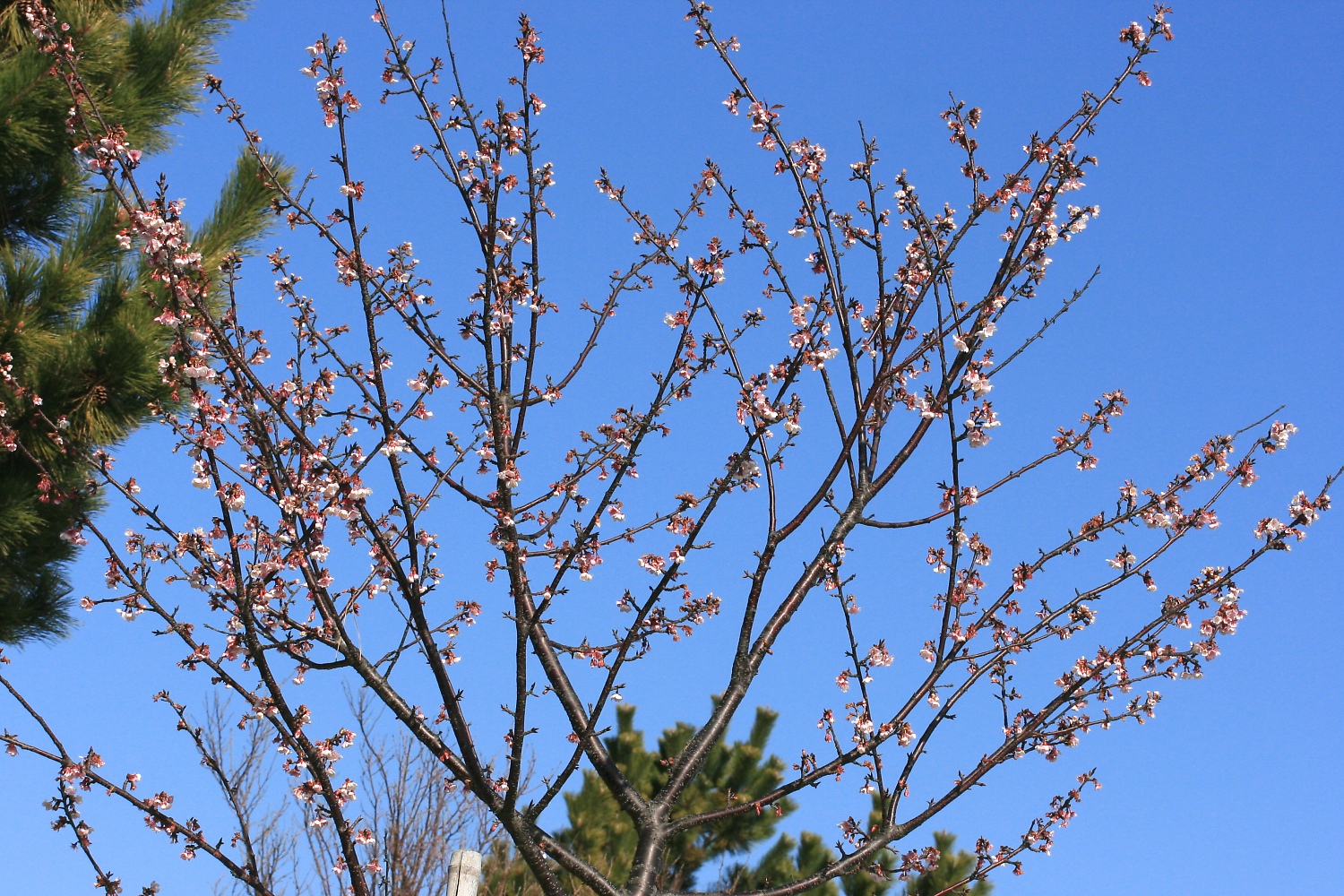 MEMO: 最も早く散り始めを迎えた寒桜の木で、寒桜は花弁が散っても萼と雄しべが 残り、見た目には満開時とあまり変化は無いが、個別の花を見ると散り始めがわかる