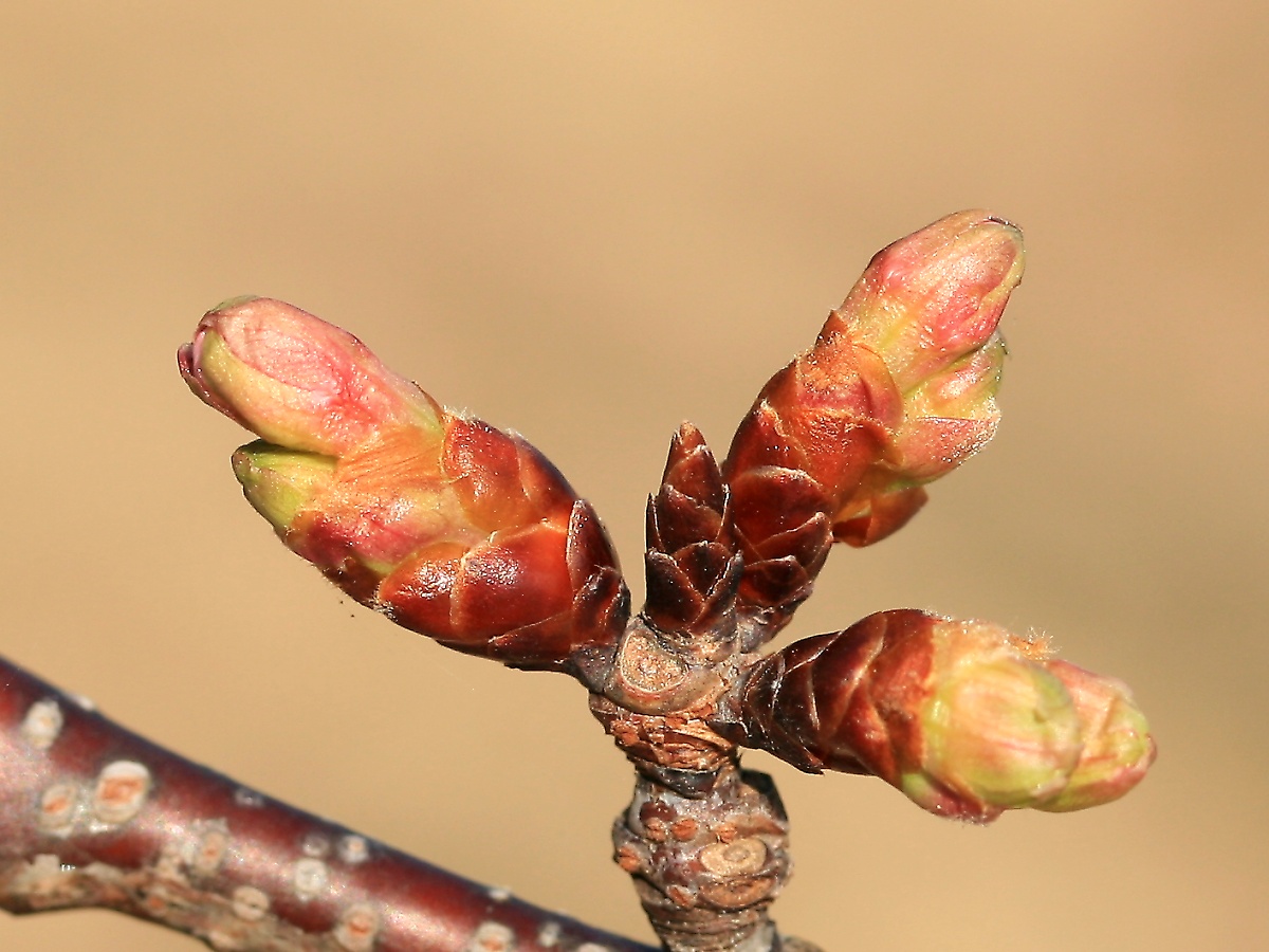 1個の冬芽から2~3個のつぼみが出始めたところ
