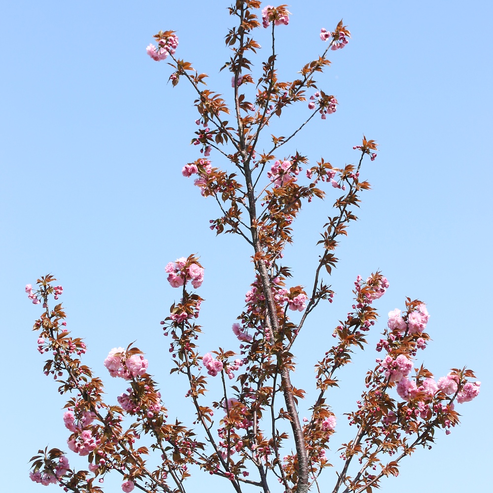 MEMO: 5分咲きの関山で、八重で大輪の花が塊となって咲くが、 葉も開き始めており、5分咲きではまだ全体的には豪華さに欠ける